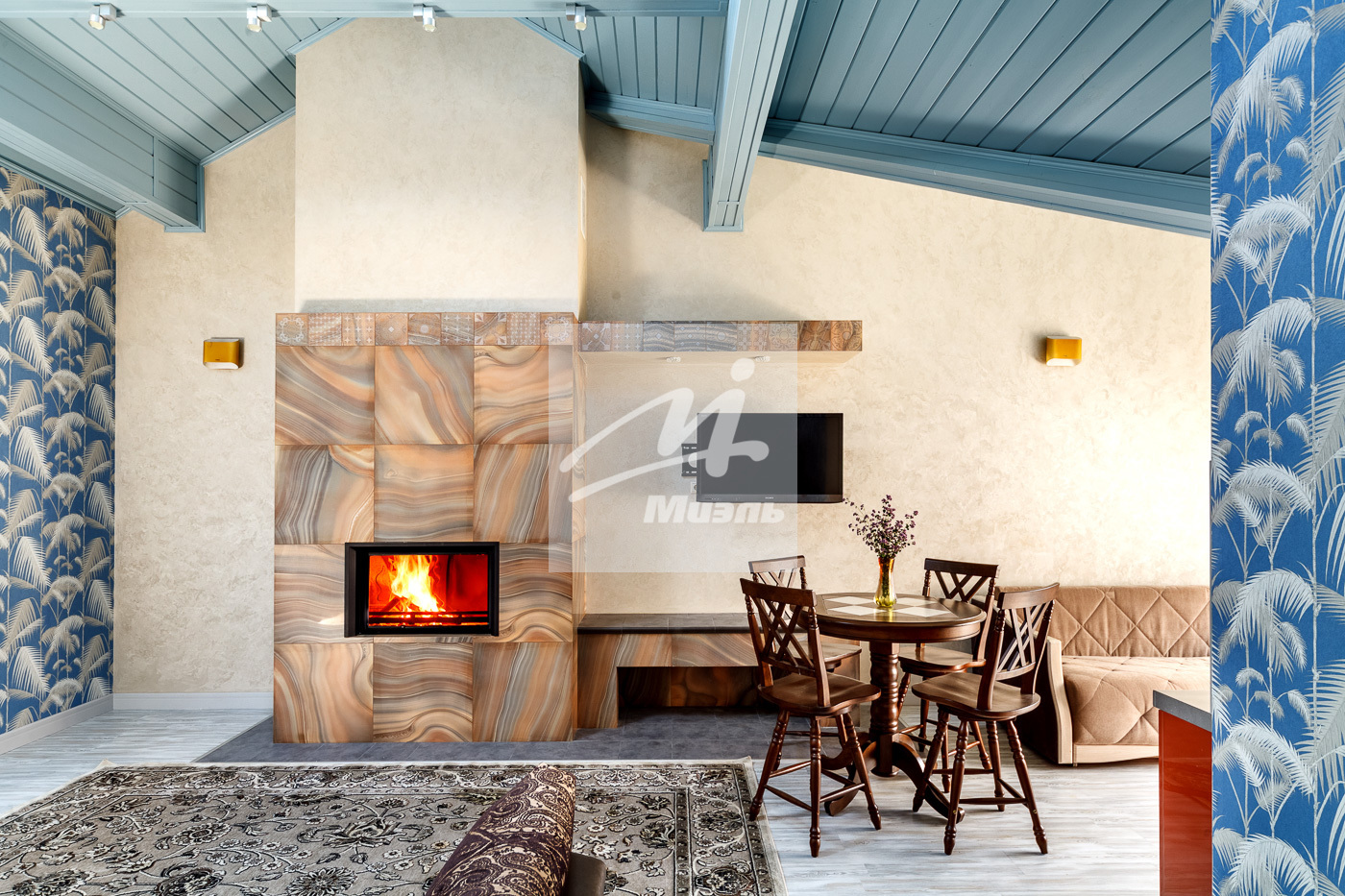 3 УРОВЕНЬ: Гостиная с камином. Кухня-столовая, санузел, спальня.