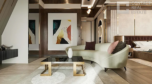 Уникальный деревянный дом площадью 600 м2 под ключ с мебелью. Дом лаконично вписывается в природное окружение. Внутренний интерьер органично сочетается и является продолжением архитектурной стилистики. В доме высокие потолки и большие окна, делающие более объемным пространство дома. А из окон открывается сказочный вид на лес. Мебель и предметы декора от известных мировых производителей.