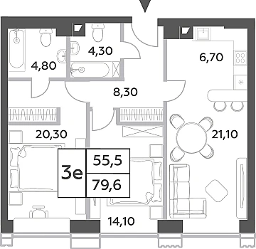 - Два совмещенных санузла для удобства жильцов и гостей.