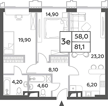 Общая площадь — 70 кв. м, что позволяет комфортно разместить семью. Квартира расположена на 23-м этаже монолитного дома, сданного в 2018 году. Панорамные окна и высота потолков 3,08 м создают ощущение простора и наполняют пространство светом. Окна выходят во двор, обеспечивая тишину и свежий воздух.