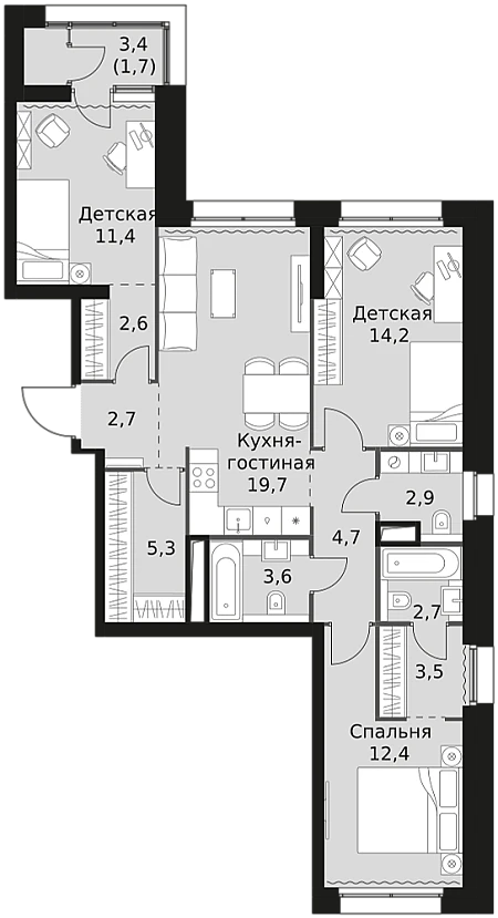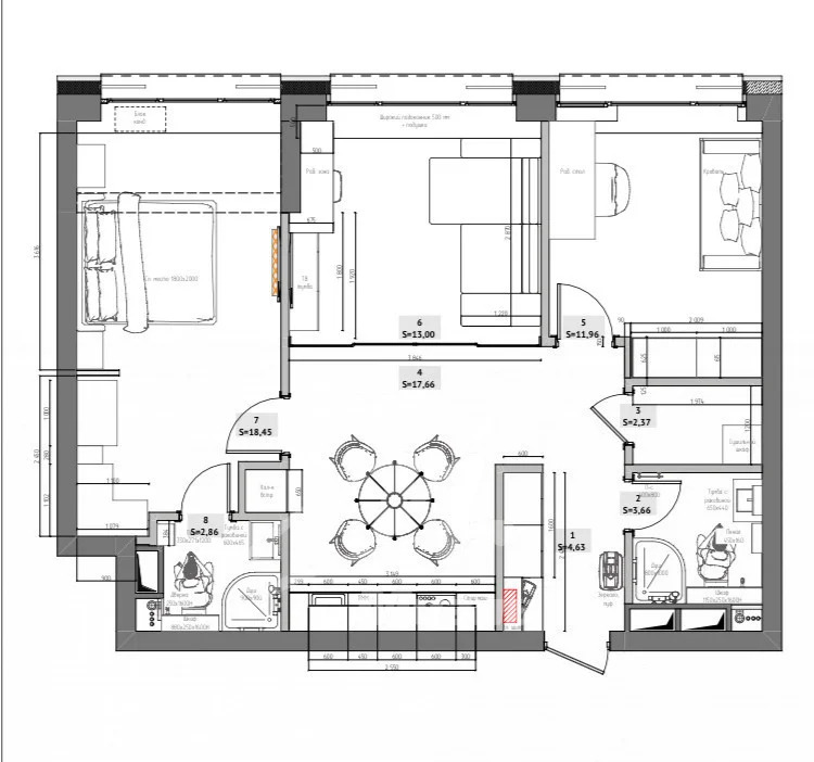 - Просторная кухня-гостиная 20 кв. м — идеальна для семейных мероприятий.