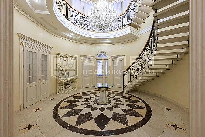Особняк под ключ в классическом стиле. В отделке дома использовались натуральные качественные материалы - мрамор, гипсовая лепнина, художественный паркет. Зоны спа-отдыха с бассейном расположены на первом этаже дома, а на втором этаже расположились спальни и хозяйский блок с живописными видами на лесной участок.