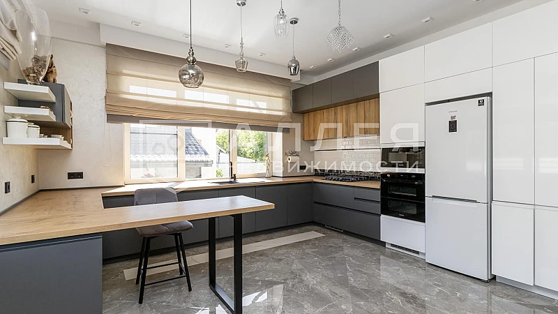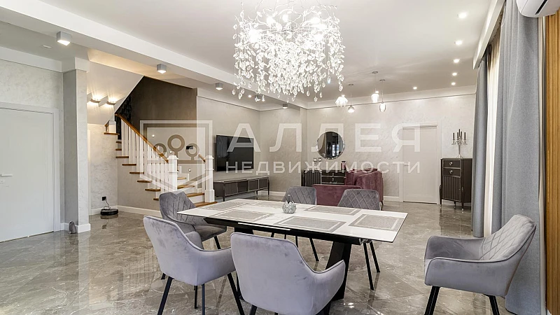 Новый дом под ключ на две семьи. Сделано два отдельных входа. Удобное решение для проживания с родителями или друзьями. Сделана современная дизайнерская отделка. Есть спальни на первом этаже для родителей или гостей. Кухни - столовые - гостиные просторные почти 100м2. Высокие потолки и большая площадь остекления делают дом очень светлым. Дом строился качественно, для себя. Установлены теплые полы и кондиционеры. Удобное решение - в доме городские коммуникации. Отдельного внимания заслуживает большой паркинг на цокольном этаже с комнатой для водителя.