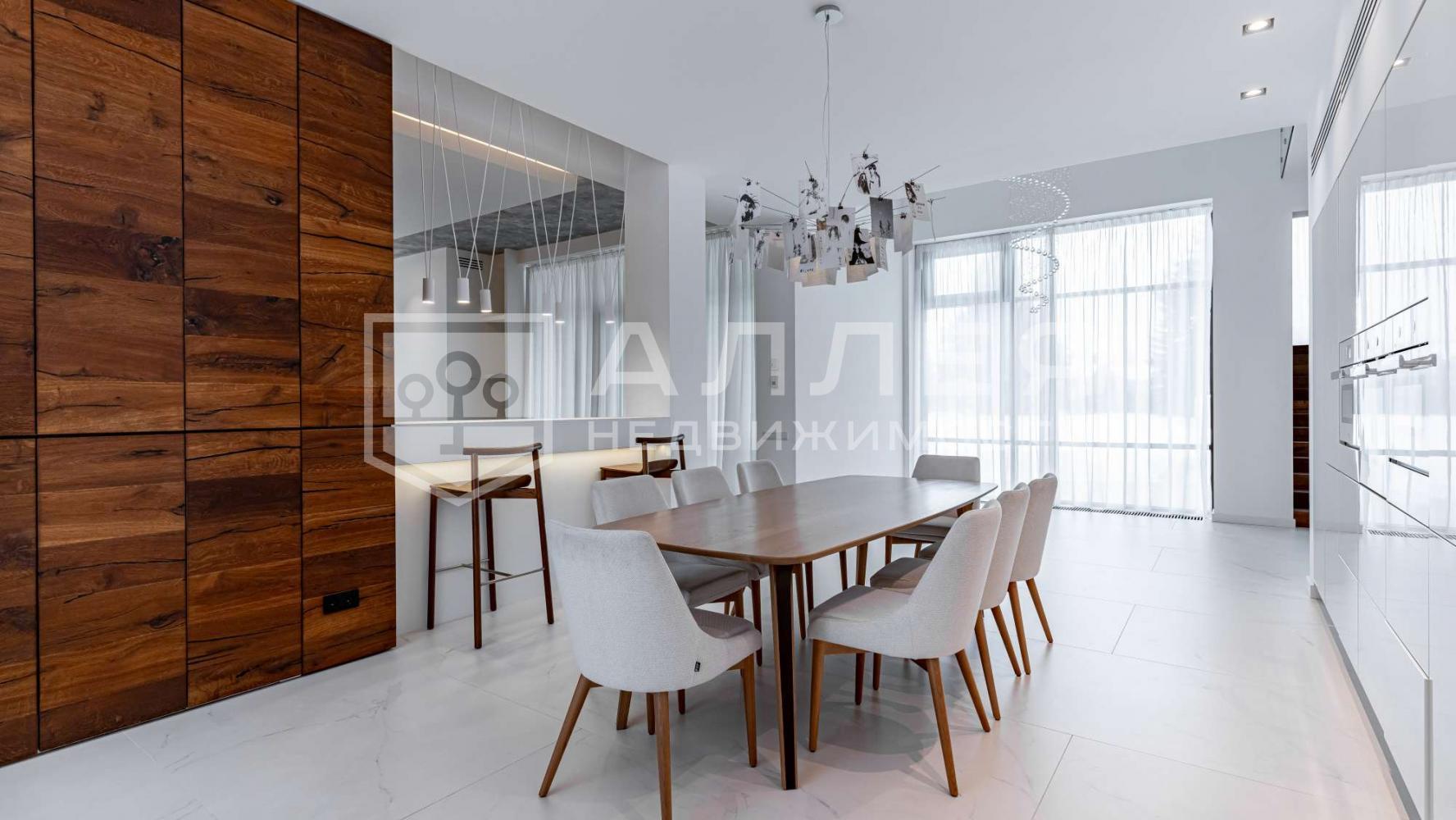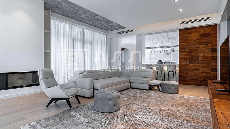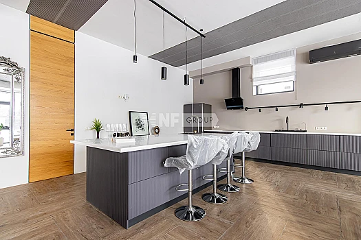 Новый дом площадью 700м2. Полностью меблирован. Интерьер дома выполнен в спокойных тонах, гармонирующих с отделкой из дерева. В доме высокие потолки и установлены панорамные окна в пол. Есть отдельный блок для персонала.