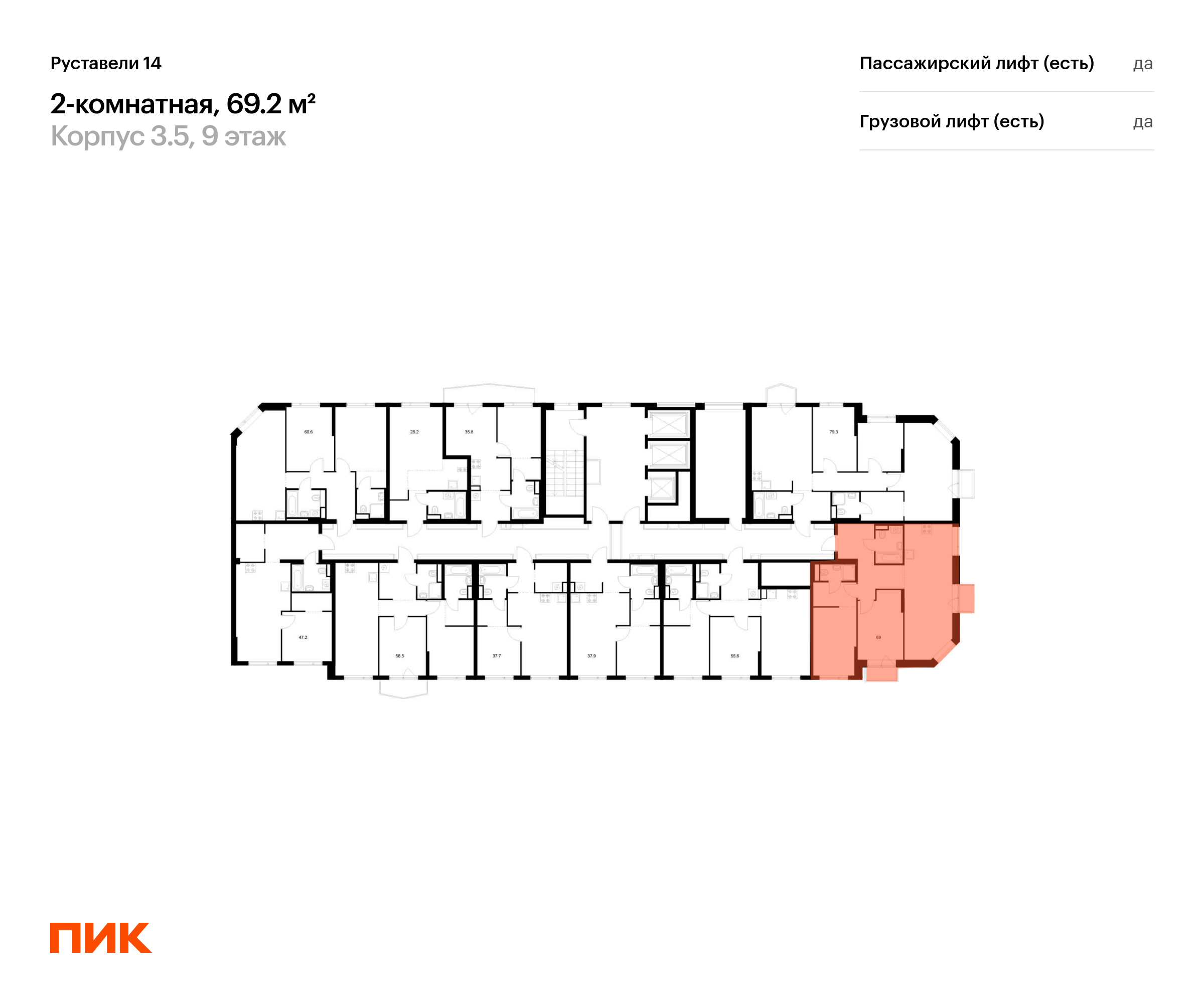 - 2 пассажирских и 1 грузовой лифт.