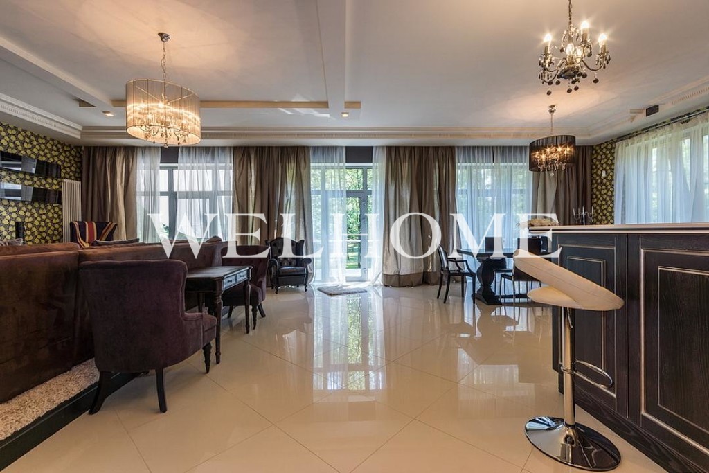 ID объекта: ZA-3912. Предлагается дом на лесном участке в камерном поселке. Фасад отделан камнем и деревом, выполнено панорамное остекление. В доме предусмотрены: бассейн, бильярдная, патио-терраса, эксплуатируемая кровля. Выполнен дорогой ремонт с дизайнерской мебелью. Отдельное здание для персонала на участке с хвойными деревьями. Детская площадка. Парковка.Поэтажное описание: Цоколь: бассейн, сауна, зона отдыха, бильярдная, гардеробная, веранда, с/у.1 этаж: гостиная, кухня-столовая, гардеробная, веранда, с/у.2 этаж: 3 спальни с гардеробными и с/у.3 этаж: спальня, зона отдыха, патио-терраса, с/у.