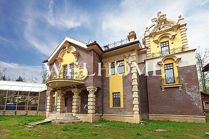ID объекта: Z-3114. На продажу предлагается особняк под чистовую отделку в охраняемом коттеджном поселке. В доме спланированы гостиная со вторым светом, каминный зал, 5 спален, кинозал, 7 с/у. К дому пристроена зона бассейна с зимним садом. На участке пруд. В отдельно стоящем строении размещен гараж с квартирой для персонала. Центральные коммуникации.Рядом вся инфраструктура: магазины, рестораны и кафе, торговые и развлекательные центры, спортивные комплексы, медицинские и образовательные учреждения и мн. др.