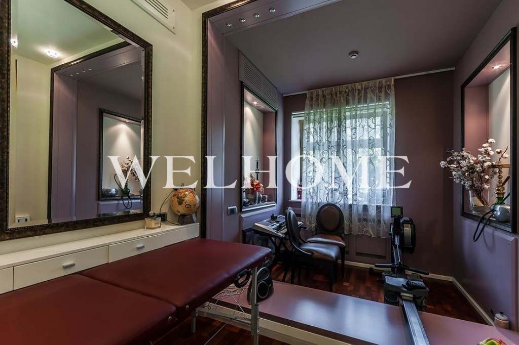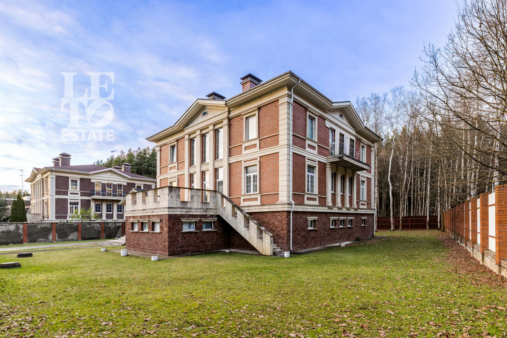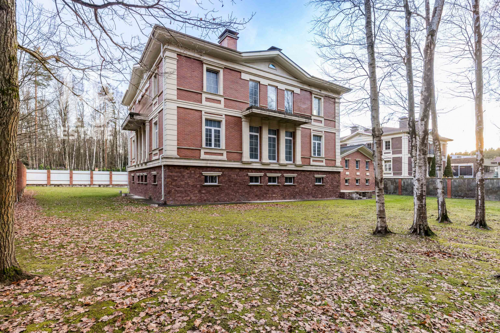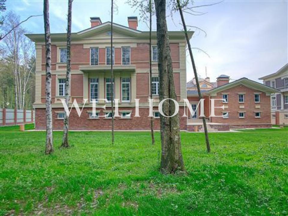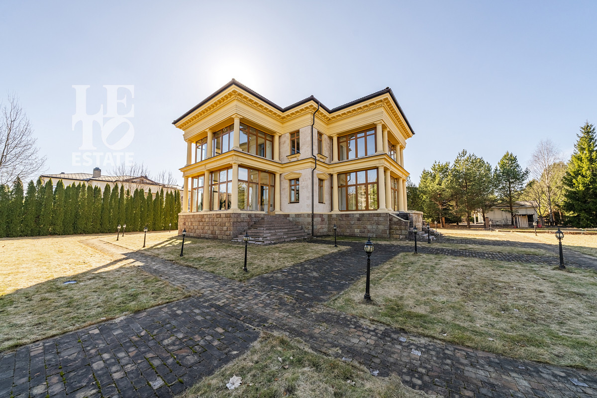 ID объекта: Z-3257. На продажу предлагается стильный особняк в охраняемом поселке. Внутренняя отделка выполнена по авторскому проекту в стиле ар деко, дом меблирован предметами от ведущих мировых производителей, оборудован бытовой техникой и сантехникой премиум-класса. В доме предусмотрена гостиная с панорамным остеклением и вторым светом, винный погреб, бильярдная, 4 спальни.Поэтажное описание: 1 этаж: гостиная с выходом на террасу, столовая-кухня, кинотеатр, холл, прихожая, 2 гостевых спальни, с/у, техническое помещение, постирочная, кладовые, бильярд, винный погреб;2 этаж: мастер спальня с с/у, кабинет, гардеробная, детская спальня, с/у, хозяйственное помещение, кухня.1 этаж: холл, гардеробная, гостевой с/у, кинотеатр (телевизионная), гостиная с выходом на террасу, столовая-кухня, 2 гостевых спальни, с/у, постирочная, техническое помещение, кладовые;2 этаж: холл, кабинет, игровая, мастер спальня с с/у и гардеробной, 2 детские спальни, детский с\у.На участке с ландшафтным дизайном высажен газон и деревья, возведен гостевой дом площадью 320 кв. м с квартирой для персонала, оборудованы игровые площадки, беседка, зона барбекю.