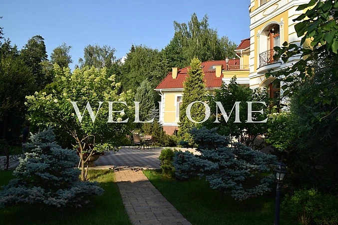 ID объекта: Z-10114. Предлагается резиденция в классическом стиле на участке с эксклюзивным ландшафтом в охраняемом поселке. В доме выполнен дизайнерский ремонт по индивидуальному проекту, есть бассейн, гостиная с камином, зимний сад, 8 спален, 9 с/у. На участке растут вековые сосны, выполнен первоклассный ландшафтный дизайн, создан фонтан, беседка, высажены декоративные растения из Германии, цветы. Все коммуникации центральные.Поэтажное описание: Цоколь: бассейн 12,5 х 6 метров, спортивный зал, 2 душевые комнаты, с/у;1 этаж: зимний сад, гостиная, кухня, кабинет, холл, 2 с/у, подсобные помещения;2 этаж: 4 спальни с гардеробными комнатами и с/у;3 этаж: 4 комнаты, 3 с/у.