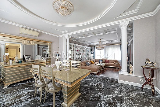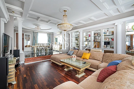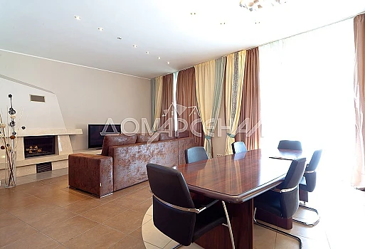Гостиная с камином ,столовая ,кухня,кабинет, зимний сад,гардеробная комната,сауна джакузи.