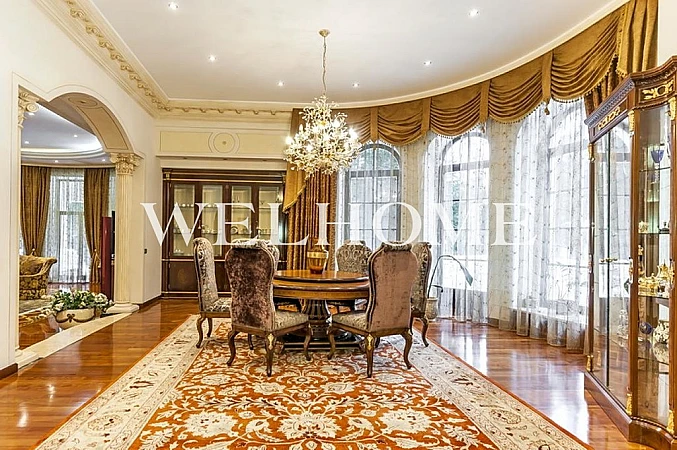 ID объекта: Z-11150. Предлагается эксклюзивный особняк под ключ в известном поселке. Изысканный дом в итальянском стиле общей площадью 1200 кв. м окружен сосновым лесом. Во внутренней отделке использованы ценные породы дерева, натуральный камень, лепнина. Интерьер особняка выдержан в дворцовом стиле, комнаты меблированы предметами от ведущих европейских фабрик, пространство оформлено с помощью антиквариата, установлена качественная бытовая техника и сантехника премиум-класса. В доме оборудован большой бассейн с просторной зоной спа, тренажерный зал. На просторном прилегающем участке с продуманным ландшафтом создан собственный пруд, вымощены дорожки. Подключены центральные коммуникации.