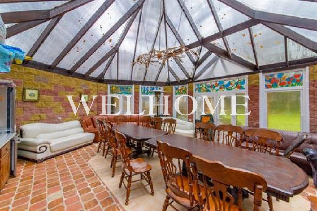 2 холла со вторым светом, 7 спален, 4 гостиные (1 с камином), 6 санузлов, столовая, кухня, бильярдная, финская баня, тренажерный зал, летняя веранда.