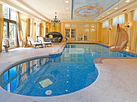 ID объекта: ZA-3922. Предлагается резиденция на ландшафтном участке в элитном поселке.В доме сделана качественная отделка с дизайнерской мебелью, великолепная зона бассейна с сауной и хамамом, второй свет, библиотека, 5 спален. После ремонта. Интерьер выполнен в классическом стиле.Поэтажное описание: Цоколь: бильярдная, кинозал, комната отдыха, с/у, сауна, холл;1 этаж: 2 с/у, бассейн, второй свет, выход на участок, гостевая спальня, гостиная, детская, душ, кабинет, каминный зал, комната отдыха, кухня, кухня-столовая, холл;2 этаж: 2 гардеробные, 2 с/у, 4 спальни, библиотека, второй свет, с/у, холл.На придомовом участке гараж на 2 машиноместа и парковка на 3 машиноместа, выполнен впечатляющий ландшафтный дизайн с водоемом.