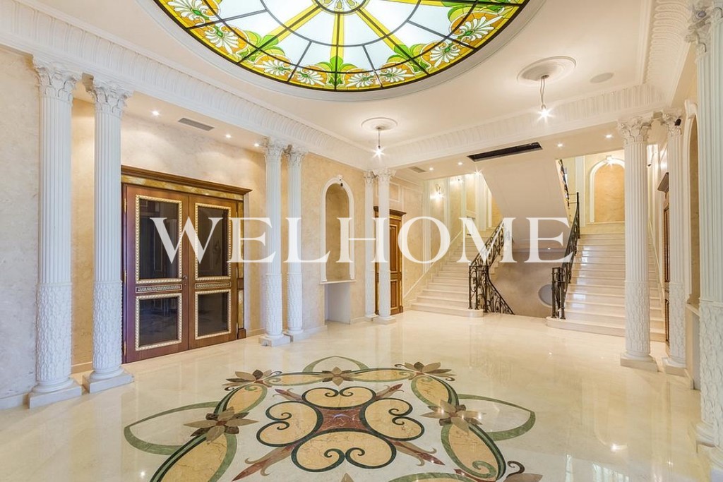 ID объекта: Z-14759. Предлагается новый дом, готовый к проживанию, на благоустроенном участке в охраняемом поселке. На участке общей площадью 55 соток органично расположились три строения ( основной дом, гостевой дом, дом для охраны ). Гостевой дом полностью меблирован и оснащен бытовой техникой. Готов к проживанию.Поэтажное описание: Цокольный этаж: хамам, массажная, спа-зона, кинозал, холодильник для меха, винная комната, комната прислуги с с\у, постирочная, кладовые, кухня повара, котельная, с\у животных, гараж;1 этаж: прихожая, гардероб, с\у гостевой, холл, кабинет, гостиная, игровая, бар, столовая 50 кв. м, кухня, гостевая спальня и гостевой с\у;2 этаж: библиотека, мастер-спальня 40 кв. м с балконом, с с\у и с гардеробной 30 кв. м, кабинет 120 кв. м, 2 детские спальни с 2 с\у и выходом на балкон, гостевая спальня с с\у, гардеробной и кабинетом, серверная, кладовая.Участок полностью благоустроен, обустроена система дренажа, заложена электропроводка для системы освещения, которая охватывает весь участок, засеяна газонная трава. Установлена детская игровая площадка GORILLA PLAYSETS Гулливер.