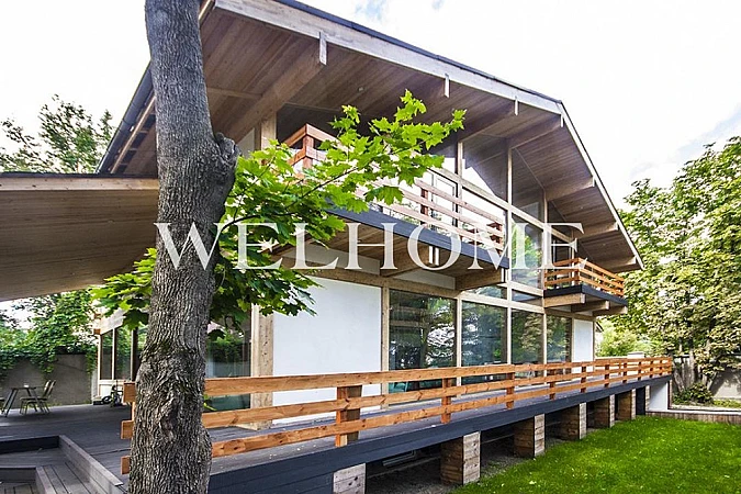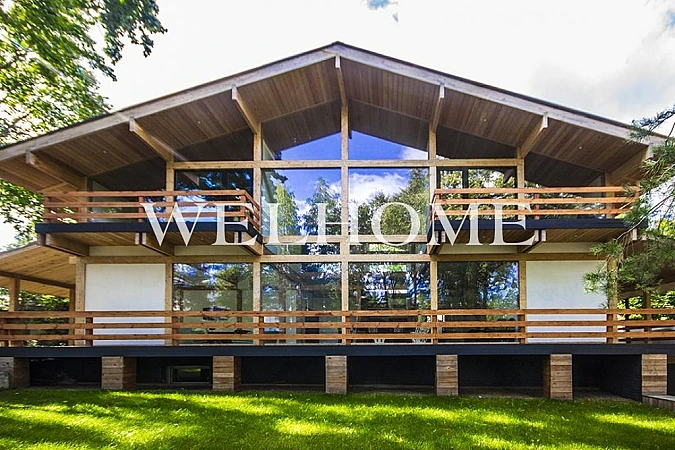ID объекта: Z-14937. Предлагается деревянный дом под ключ на лесном участке вблизи Москва реки. Шале построено в 2 уровня, где кухня-столовая, гостиная с выходом на террасу и задний двор на первом этаже. Второй этаж отдан приватной зоне с четырьмя спальнями и с/у. Панорамное остекление делает дом наполненным светом и придает определённый шарм современному интерьеру.Отдельно, на лесном участке расположены теплый крытый паркинг на 2 м/м.