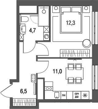 Продаются 1-к апартаменты площадью 42.9 кв.м. на 10-м этаже 29 этажного дома в "NAMETKIN TOWER" от ГК ОСНОВА.