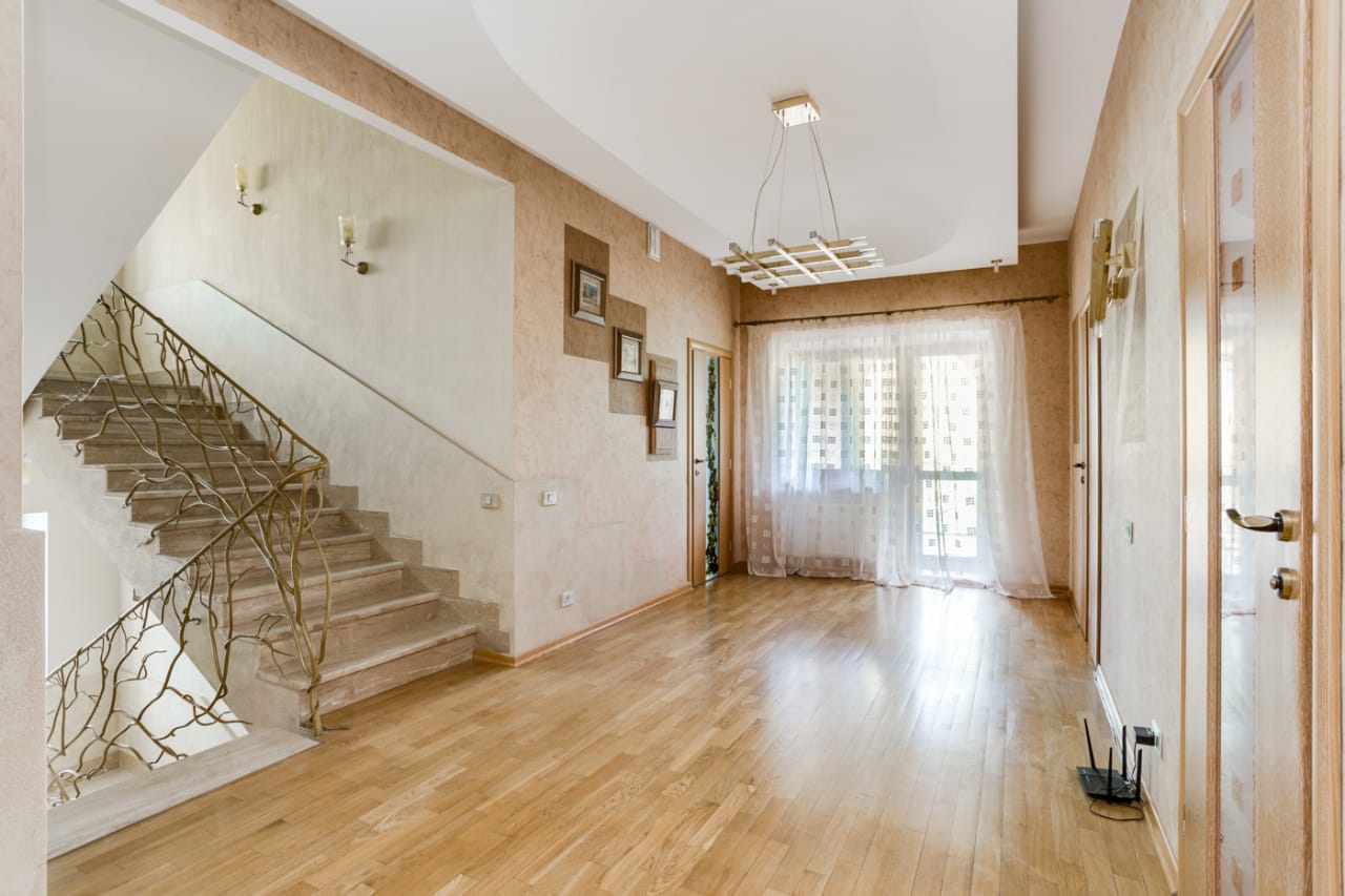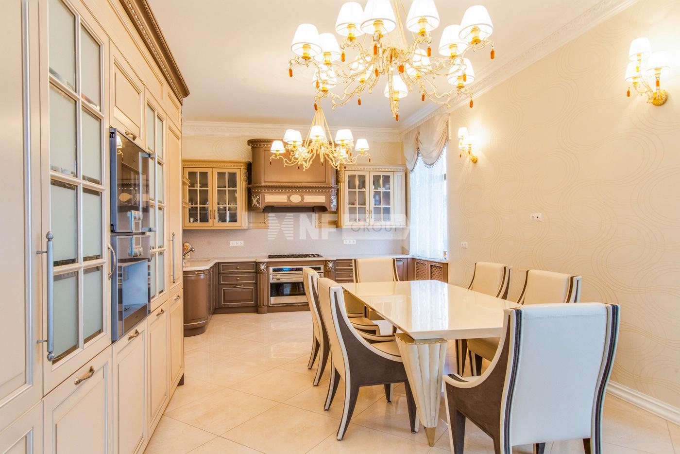 ID объекта: ZA-15527. Предлагается в аренду торцевой четырёхуровневый таунхаус площадью 424 кв.м. в премиальном коттеджном посёлке «Ильинка». На придомовой территории размером 7 соток высажены плодовые деревья и кустарники, есть закрытая беседка-барбекю с летней кухней и кладовым помещением, а также уютная уличная зона отдыха с навесом и крытая стоянка на 2 м/м. Есть блок для персонала со своим входом.Дом полностью меблирован, оснащён приточно-вытяжной системой вентиляции и кондиционерами, на каждом этаже установлен встроенный пылесос. Также в доме установлены водяные тёплые полы, спутниковое телевидение, есть система видеонаблюдения и высокоскоростной интернет, дом оборудован системой водоочистки и системой аква-стоп.Цоколь: домашний кинотеатр с кухней, сезонная гардеробная, комната-холодильник, 2 кладовых, котельная, постирочная, с/у; 1 этаж: тамбур, холл, гардеробная, с/у, кухня-столовая с выходом на улицу, гостиная с биокамином, квартира для персонала с кухней, с/у и отдельным входом; 2 этаж: мастер-спальня с гардеробной и ванной комнатой, оснащённой джакузи и душевой кабиной, а также отдельным с/у, спальня с с/у и комната для гостей с с/у и выходом на балкон;Мансарда: спортзал, спальня с с/у, спальня с с/у и кабинет.