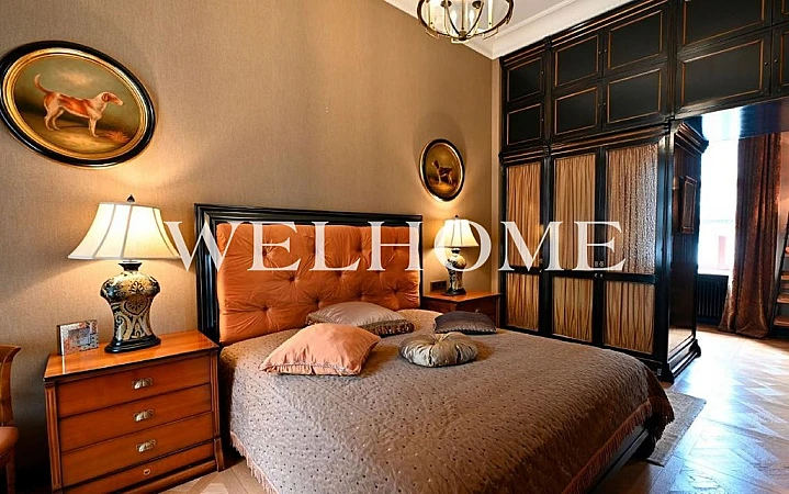 ID объекта: G-6411. Просторная квартира с отделкой в стиле Английская классика. Планировка: гостиная с действующим камином, кабинет, кухня-столовая, 2 спальни, 2 гардеробные, 2 санузла. В квартире антикварная мебель и предметы искусства. Окна выходят в тихий внутренний двор и на посольство Бельгии. Дом со львами реконструированный особняк с уникальным фасадом, декорированным арками, пилястрами, лепниной, эркерами. Вход обозначен тремя крупными фасадными арочными нишами и двумя скульптурами львов, является одним из самых известных домов в Москве. В свое время здесь проживал писатель Алексей Толстой, в доме бывали поэты Есенин, Цветаева. В доме со львами всего 27 квартир. В 2001-2003 гору проведена полная замена коммуникаций, центральное кондиционирование, обеспечена автономная подача воды, установлены бесшумные лифты. Огороженная территория с видео наблюдением.