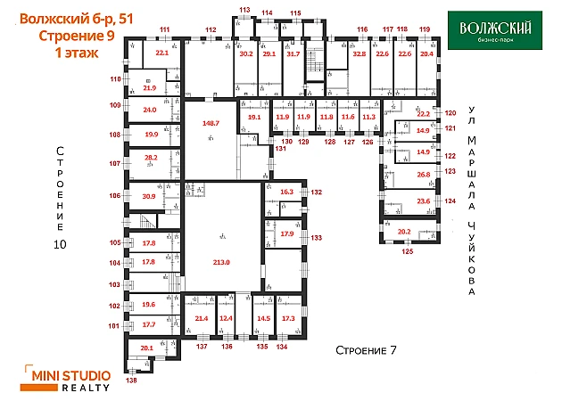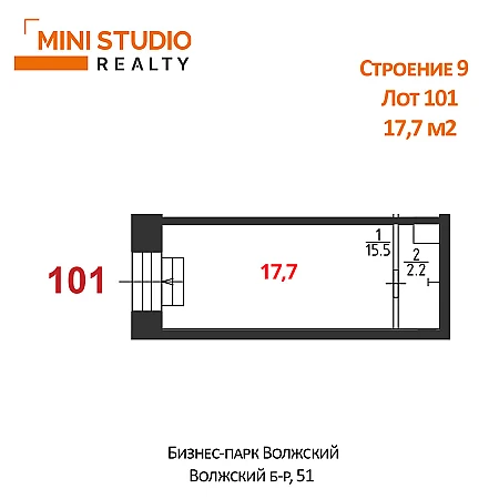 Выгодное предложение для бизнеса. Продается помещение свободного назначения с отделкой и отдельным входом 17,7 кв.м на 1 этаже в Бизнес-парке Волжский (лот 101 на плане).