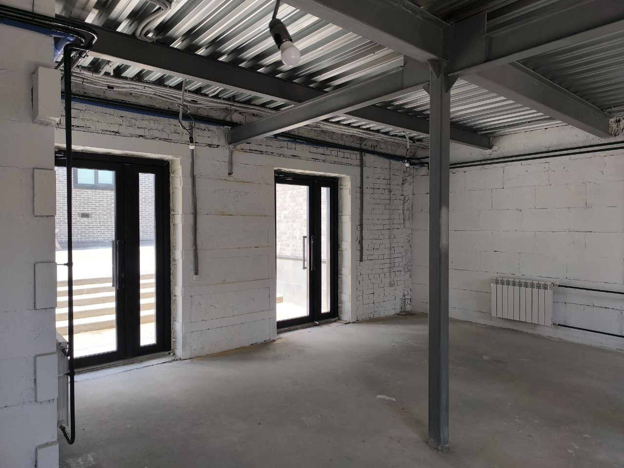 Высота потолков 4 м., помещение под чистовую отделку. Комнат в помещении - 2, две мокрые точки, тип окон - витринные, окна выходят на улицу.