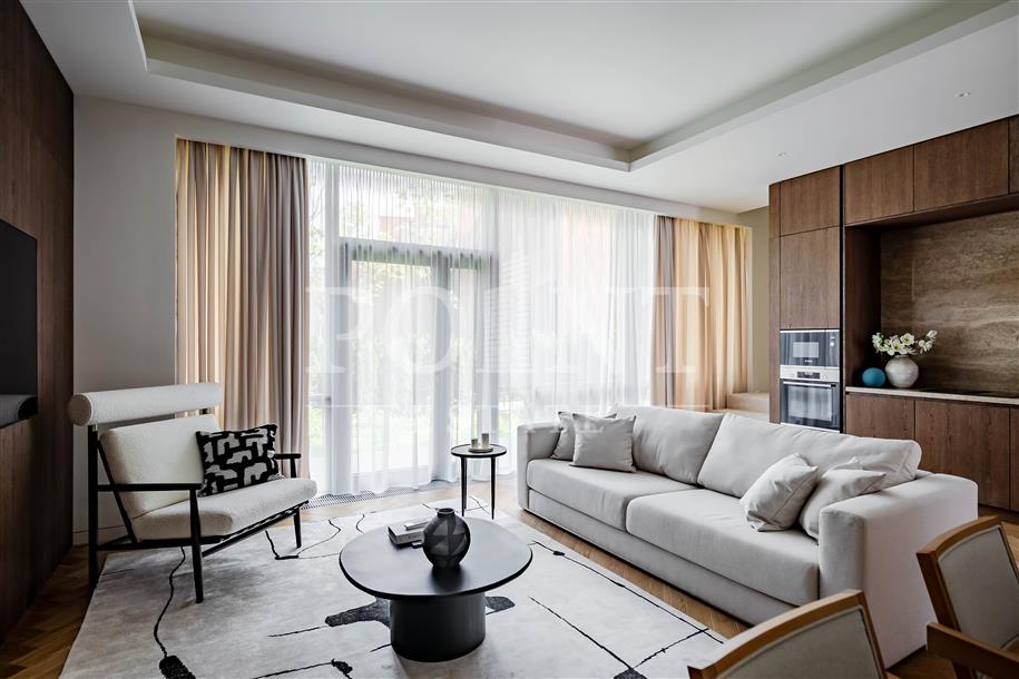 Лот: 50426. Предлагается трехуровневый таунхаус с террасой общей площадью 180 кв.м под ключ с мебелью, построенный в классическом английском стиле по индивидуальному проекту в охраняемом коттеджном поселке "Бристоль". На первом уровне размещена гостиная, объединенная с кухней и обеденной зоной, санузел, гардеробная, прихожая, небольшая терраса. На втором уровне находятся две спальни, одна из которых со своей гардеробной, санузел, постирочная, холл. Третий уровень (мансарда) отведена под еще одну спальню с гардеробной, холл. Есть парковка на два автомобиля. К жилому комплексу примыкает Ульяновский лесопарк, неподалеку находится природный водоем. На территории поселка современный спортивный комплекс, спортивная и детская площадки, теннисный корт, охраняемая парковка, детский сад. Неподалеку находятся детские дошкольные, общеобразовательные и медицинские учреждения, торговые комплексы МЕТRО, Мега, Ашан и IKEA, в 5-ти минутах ходьбы Vnukovo Outlet Village.