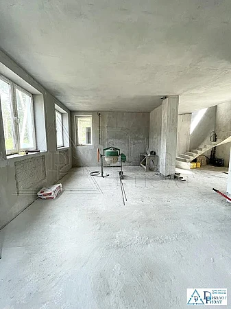Дом уже построен, стены - газобетонные блоки, фундамент - бетонный монолит, фасад дома облицован немецкой клинкерной плиткой. Внутренние стены дома отделаны механизированной штукатуркой, которая дает возможность выравнивать стены без дополнительной шпаклевки. Функциональной планировкой первого этажа предусмотрены: кухня-гостиная, техническая комната, санузел, сауна, просторный холл, винный погреб; на втором этаже расположены 3 жилые комнаты с гардеробными, 2 балкона, санузел. Во всем доме установлены пластиковые окна KBE. Электричество и газ заведены в дом, отопление посредством газового котла (установлен Итальянский газовый котел).