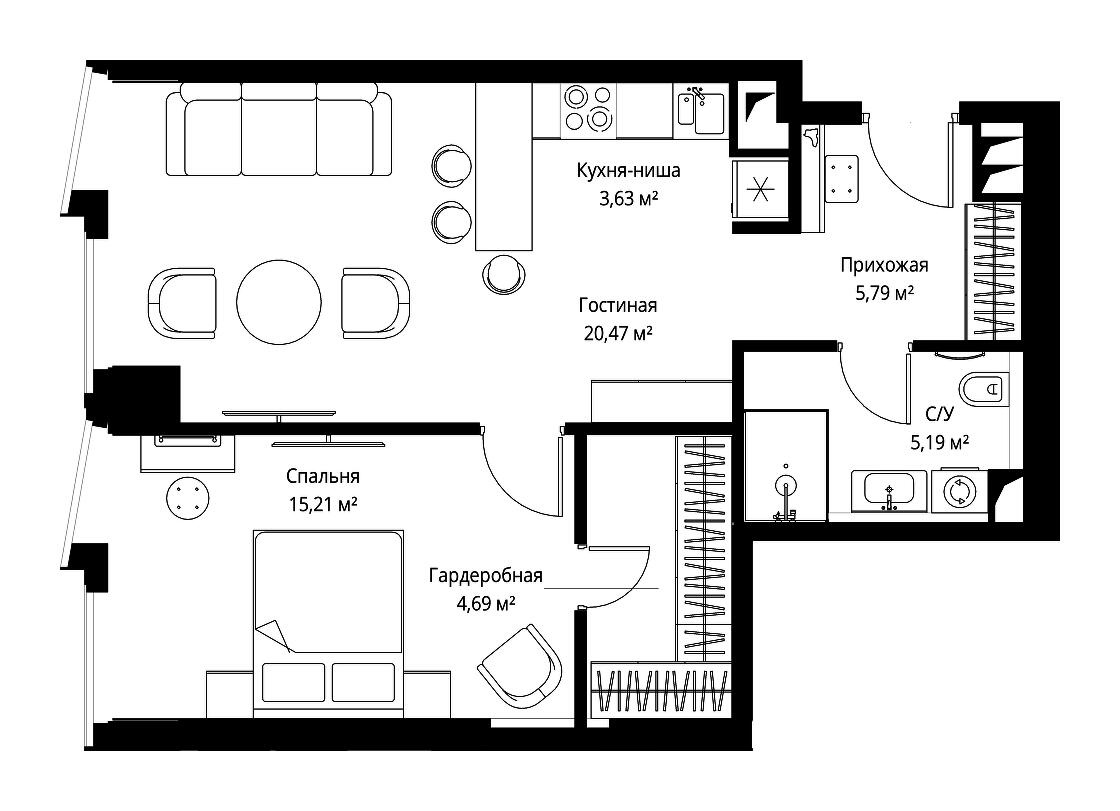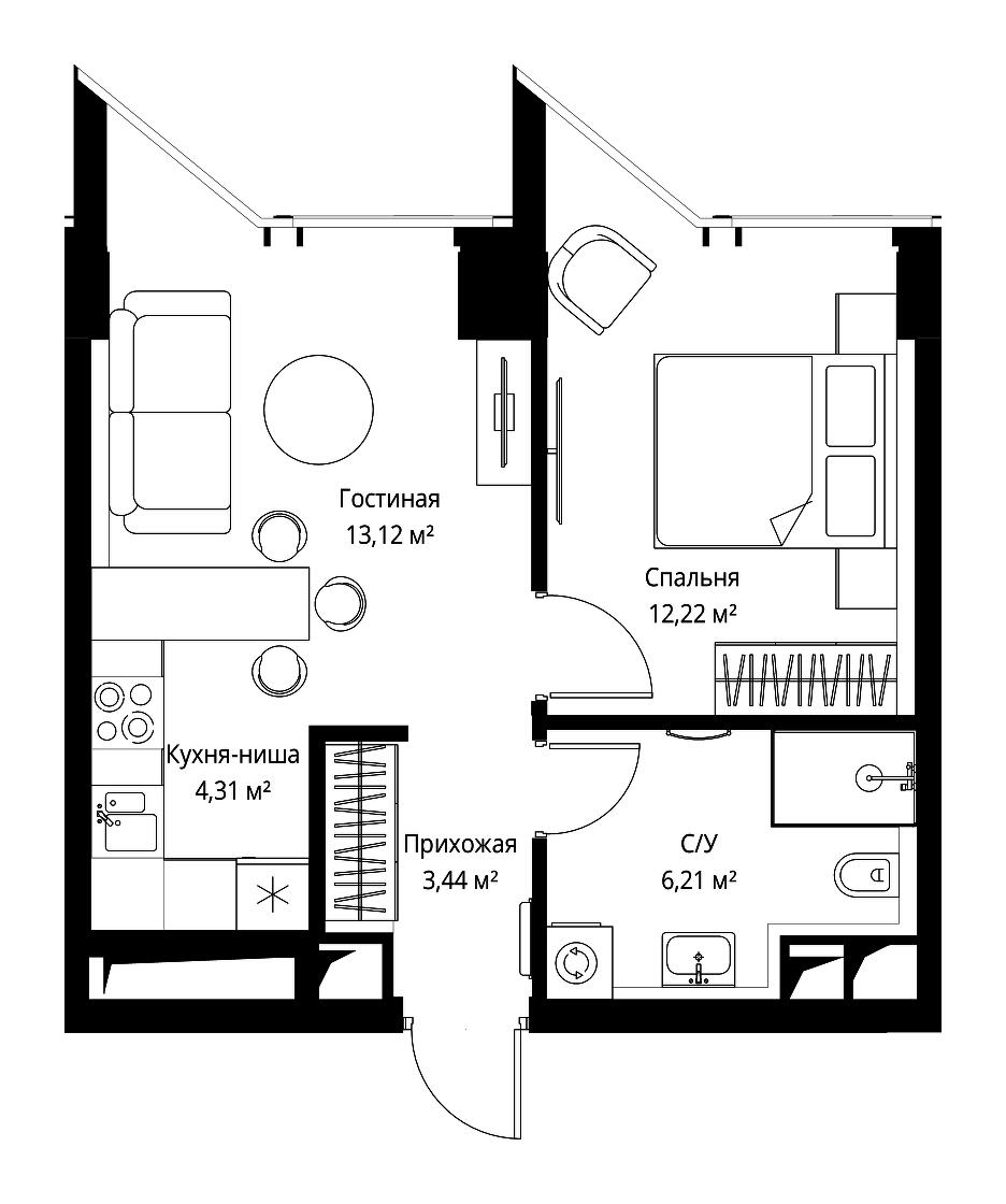 Купить 1к квартиру 37 м² в апарт-комплексе SLAVA (Слава)