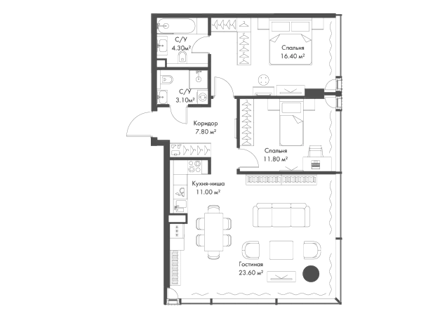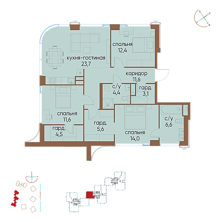 Купить 2к квартиру 78 м² в апарт-комплексе SLAVA (Слава)
