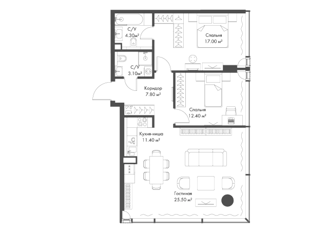 Купить 2к квартиру 81 м² в апарт-комплексе SLAVA (Слава)