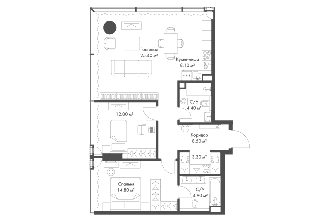 Купить 2к квартиру 81 м² в апарт-комплексе SLAVA (Слава)