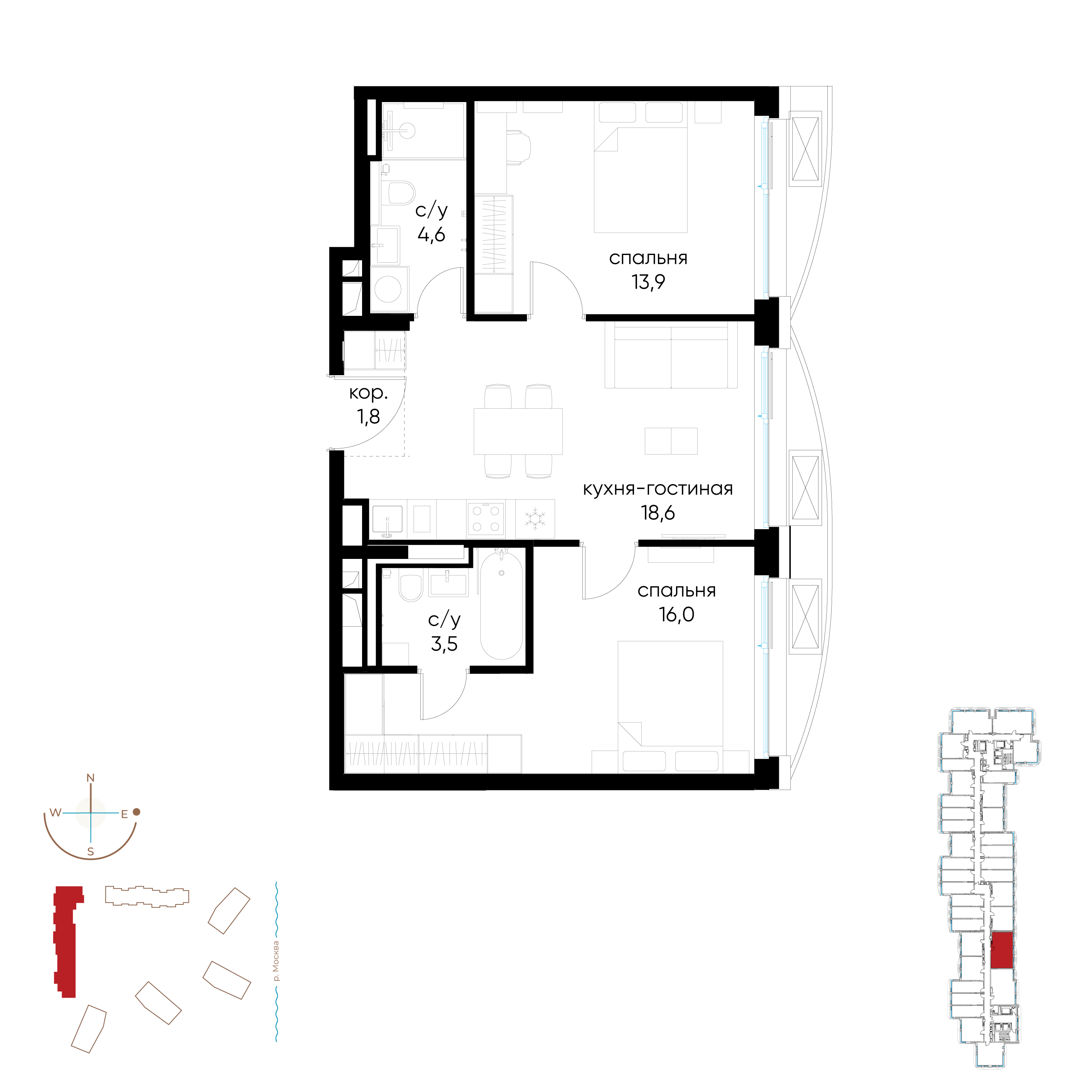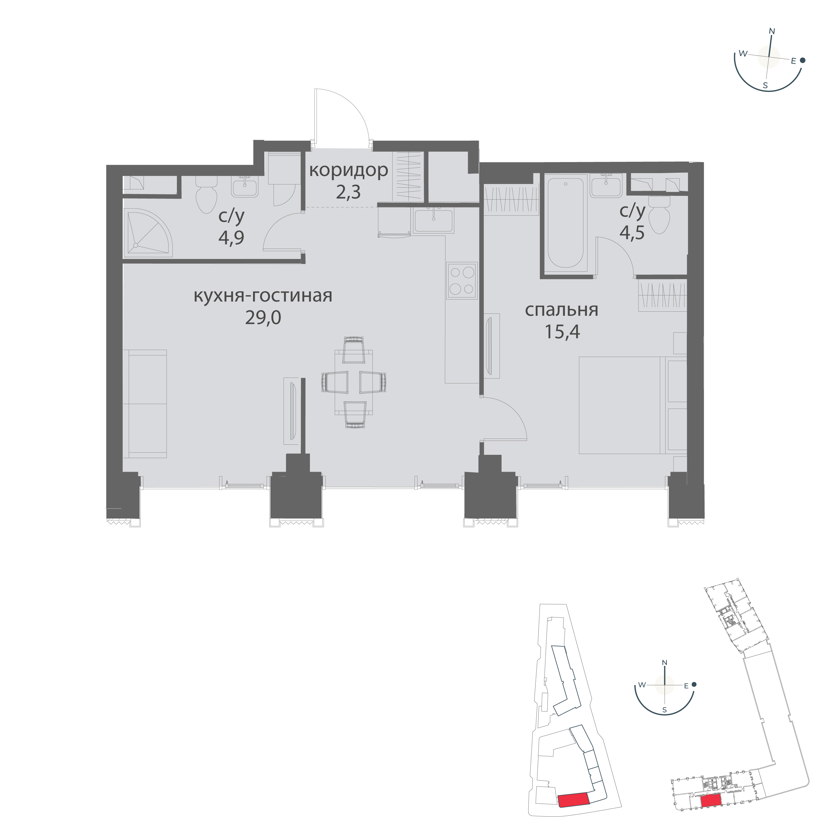 Купить 1к квартиру 41 м² в апарт-комплексе SLAVA (Слава)