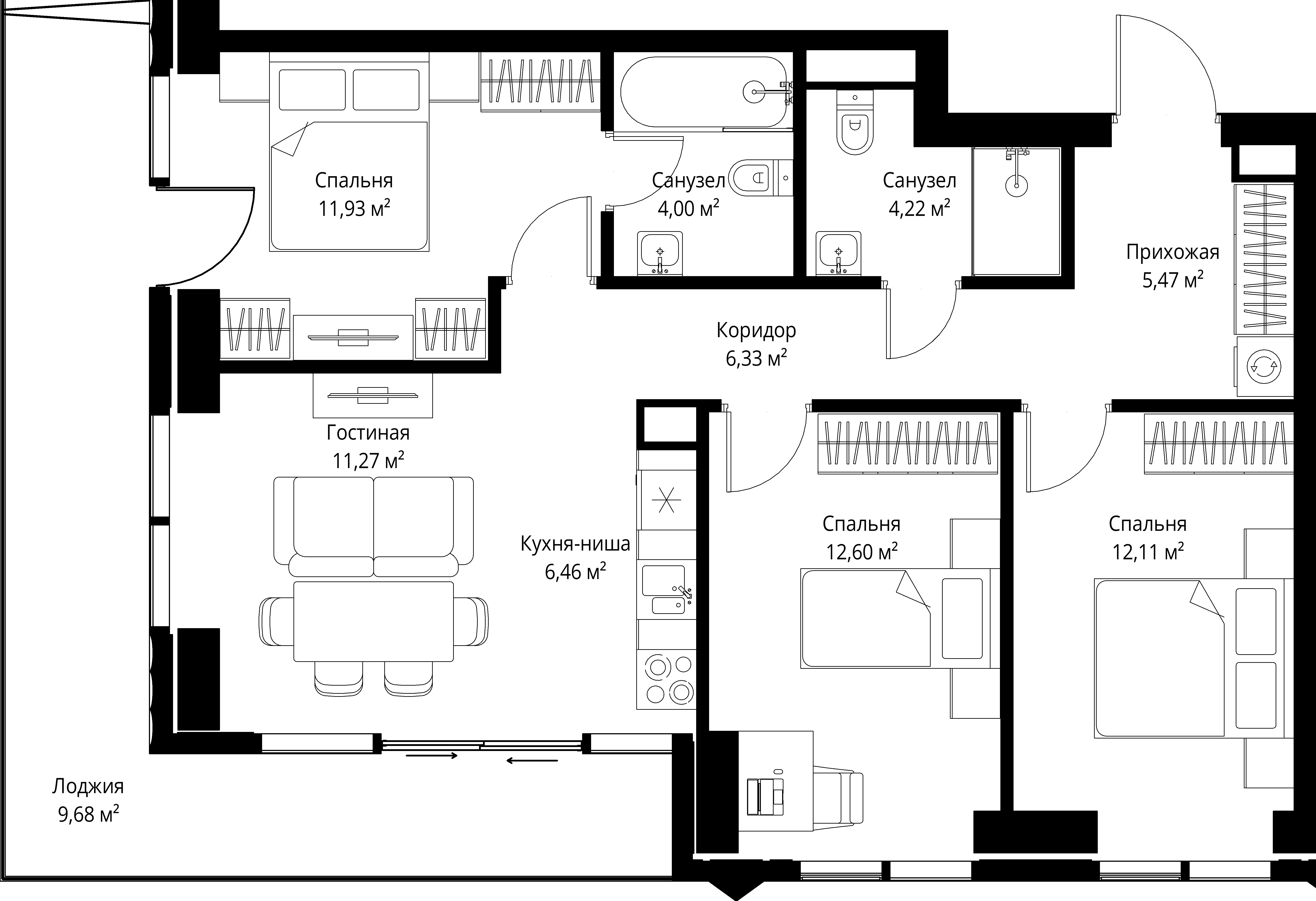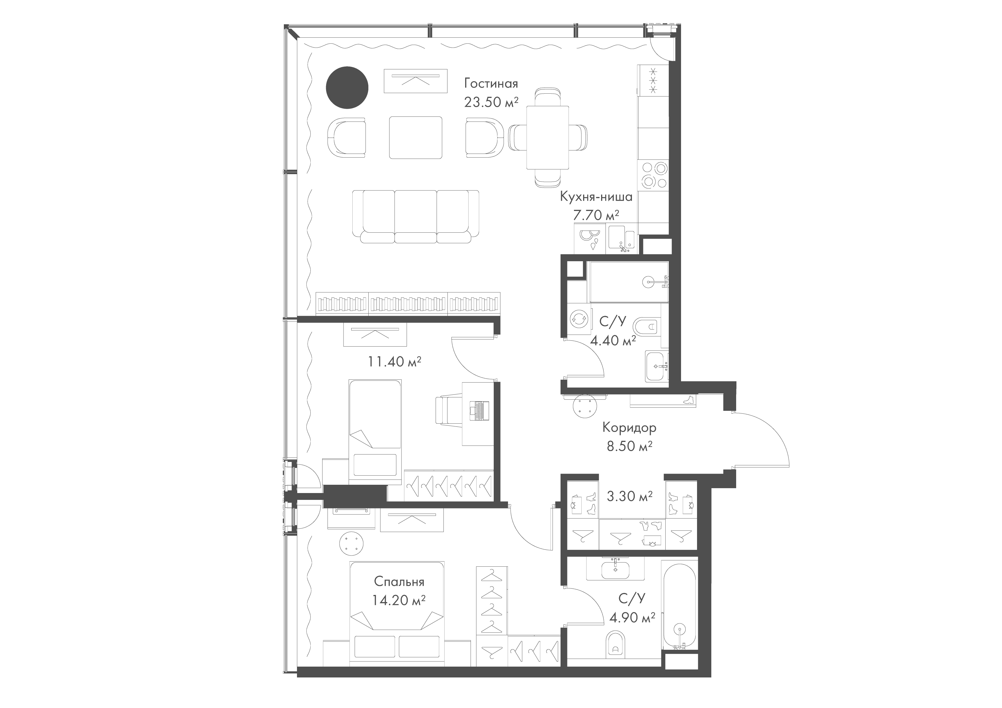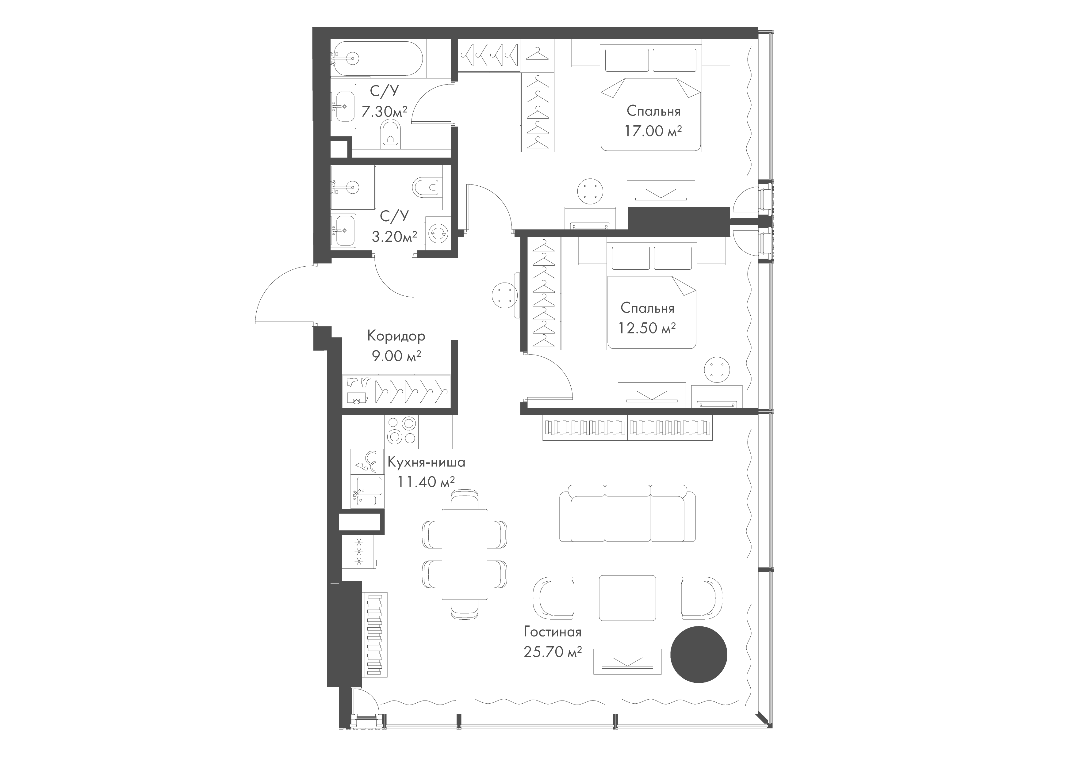 Купить 2к квартиру 67 м² в апарт-комплексе SLAVA (Слава)