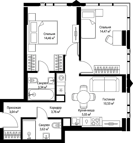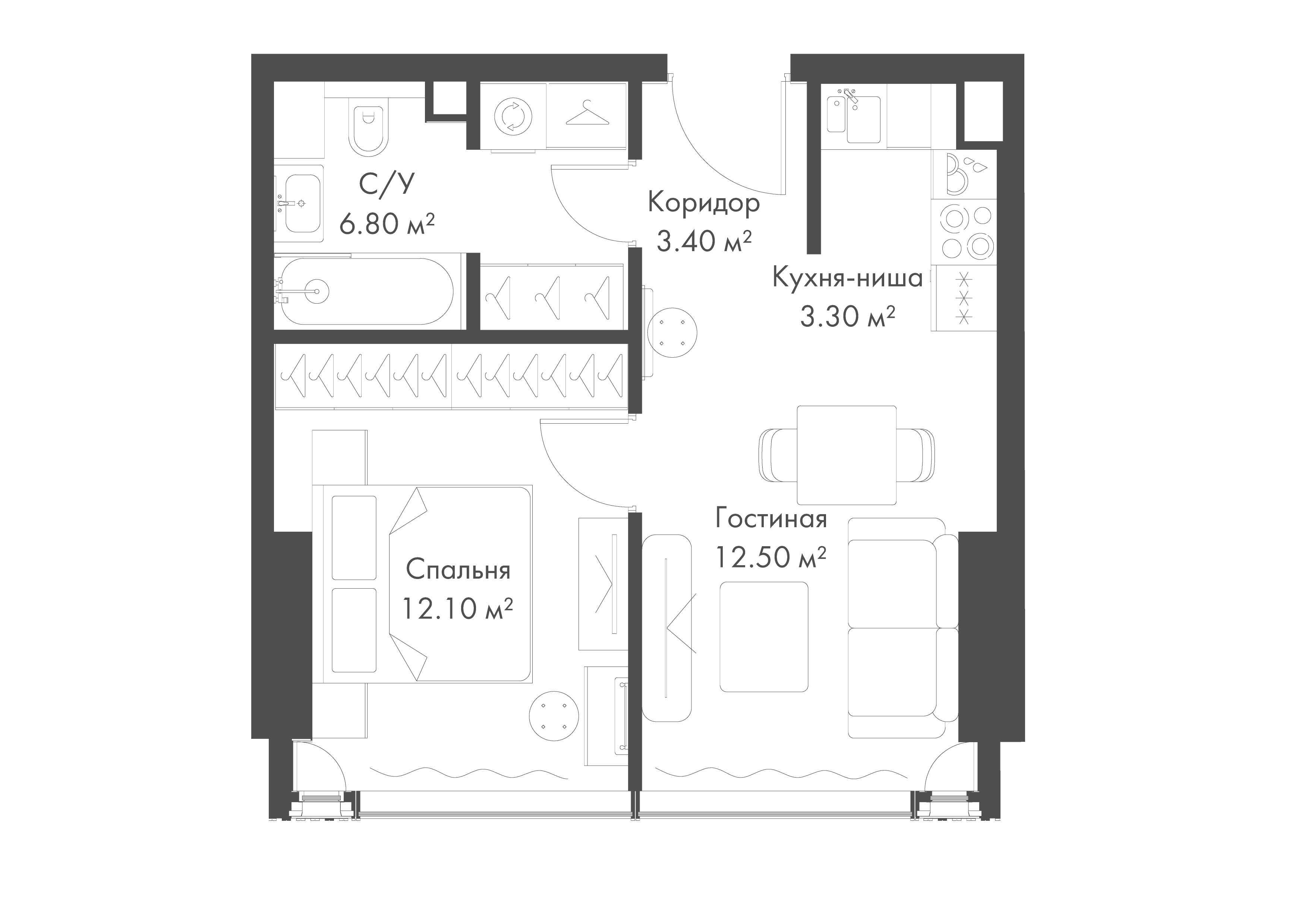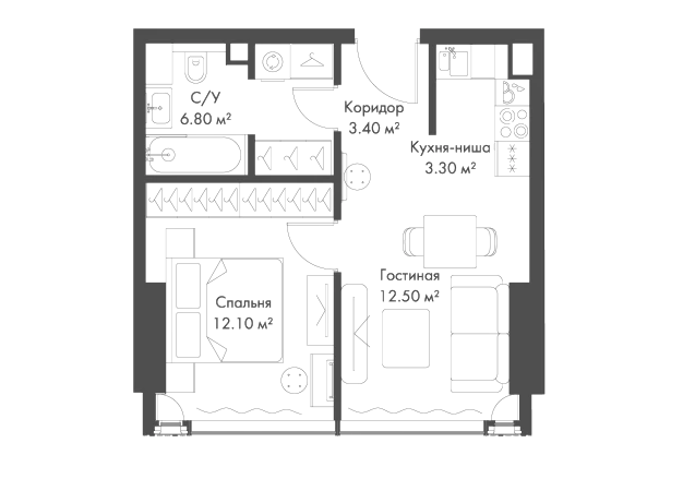 Купить 1к квартиру 38 м² в апарт-комплексе SLAVA (Слава)