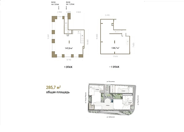 Предлагаем в покупку ПСН на ул. Зубовская в ЖК "Roza Rossa". 285,7 кв.м., угловое помещение с панорамным остеклением и отдельным входом с улицы Тимура Фрунзе. Высокие потолки. На первом этаже 4,15 метра и на -1 уровне 3,8 метра. Площадь первого этажа 147 кв.м., - 1 этаж 138,7 кв.м. Престижное окружение, район Хамовники. В самом ЖК 118 апартаментов, 8 пентхаусов, и бутик-отель. Профессиональное сервисное обслуживание УК. Пешеходный трафик 18972 чел. в день, Выделено 58 кВт электроэнергии.