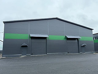 - Два склада из сэндвич-панелей - 1470,1 м2 и 1484,1 м2, пол - беспылевое покрытие, потолки от 6 до 8 м.