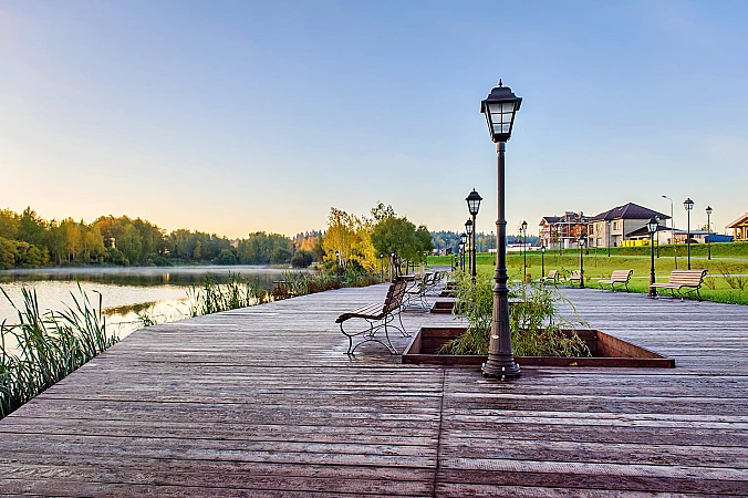 На территории поселка находится собственная живописная набережная с пляжем. Вокруг – вековой лес. Поселок охраняется, территория благоустроена, рядом расположены супермаркеты, школы, детские сады, медицинские центры, а также объекты развитой инфраструктуры Подольска и Троицка.