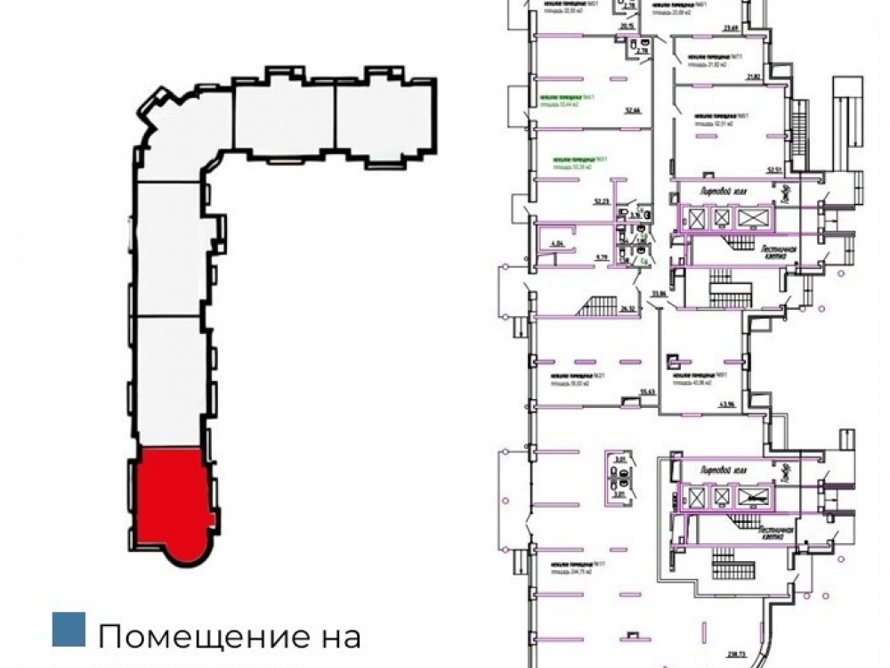 . 1 этаж 9-ти этажного жилого дома, общей площадью 354 м². Три входа: с фасада, со двора и зона разгрузки с торца. Кабинетная планировка, перегородки не несущие (гипсокартон). Выделенная электрическая мощность 30 кВт (можно поднять до 60 кВт). Городские коммуникации. Высота потолка 3,4 метра. Витринное остекление по фасаду.