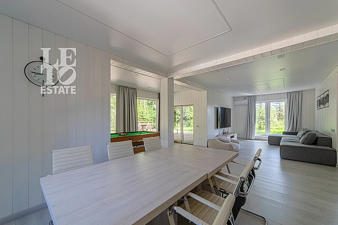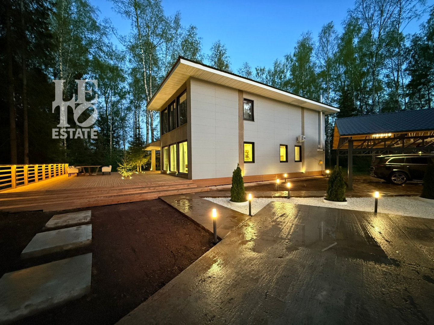 Вашему вниманию представляется уникальное предложение: современный дом под ключ на лесном участке в поселке Лесная Поляна, расположенный в 45 км от МКАД по Дмитровскому шоссе близ поселка Андрейково. Дом построен в 2024 году по индивидуальному проекту в современном стиле, фасад выполнен из панелей марки NICHIHA. Дом расположен на границе с лесным массивом, на участке растут дуб, фундук, клен, ели и березы, что обеспечивает Вам полную приватность. На участке сделан ландшафт, навес для автомобилей, детская площадка, установлены итальянские светильники внешнего освещения на всей уличной зоне, а уникальность объекту добавляет летняя терраса с уличным столом из натурального камня с красивой текстурой, обращенная к лесной части. Ремонт дом внутри выдержан в спокойных и светлых тонах, парящая лестница на монокосоуре с диодной подсветкой, панорамные окна, все ванные комнаты с итальянской мебелью и сантехникой, а планировочные решения дома удовлетворят самый изысканный запрос. Отделочные материалы и предметы интерьера выполнены из натуральных материалов ведущих производителей. Установлены два котла с расчетом дальнейшей постройки гостевого дома, установлены камеры видеонаблюдения во всем доме и система охраны.