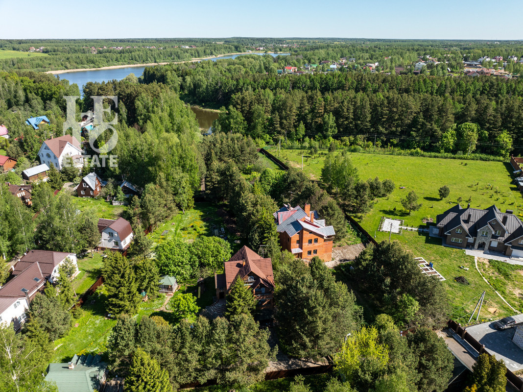 На территории участка построен 2-х этажный дом площадью 331,8 кв.м. из кирпича на монолитном фундаменте, хоз. блок и на берегу построена уютная беседка.