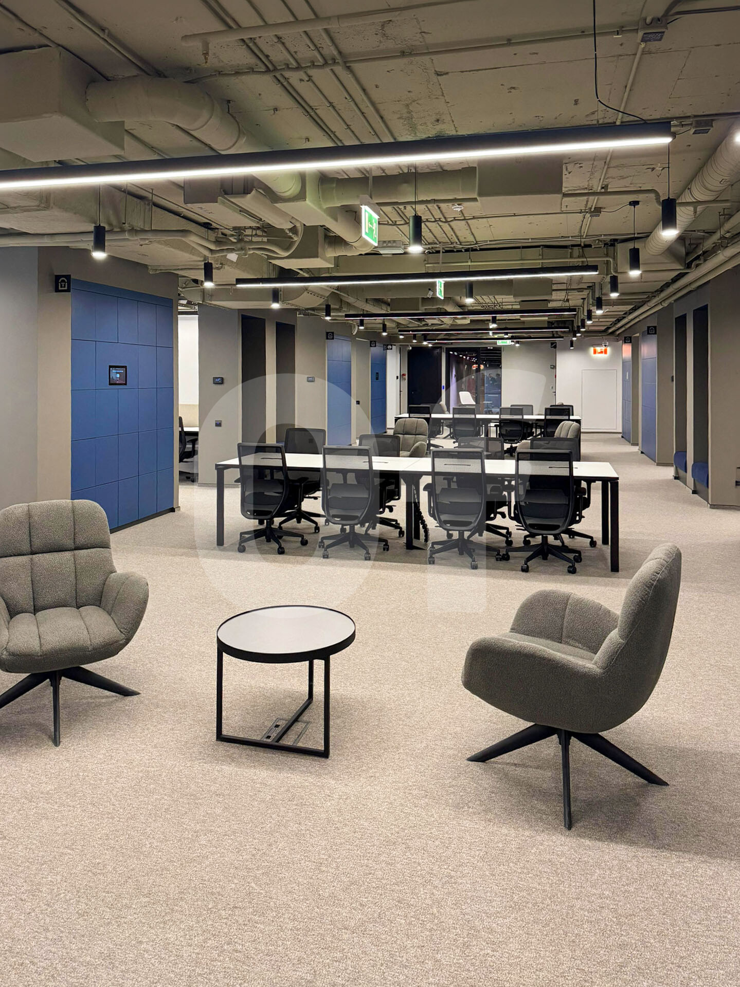 Офис включает разнообразные зоны для работы и отдыха: библиотеку, event-пространство, переговорные комнаты, зоны для командной работы и тихие кабинеты, а также оборудованную комнату для ВКС. Для вашего комфорта предусмотрены welcome-зона, кофе-зона и хотдески.