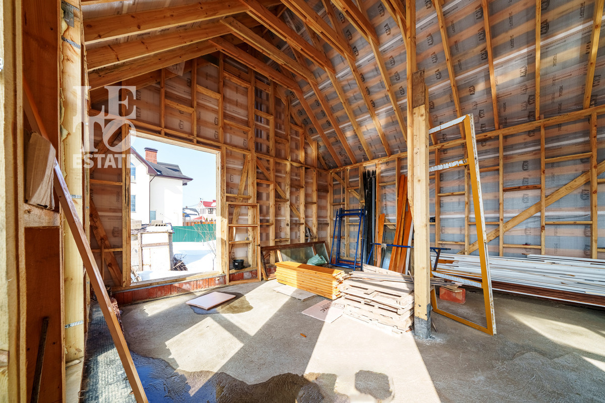 Дом построен в 2023 году. Фундамент - монолитная плита 40 см с двойной гидрозоиляцией. Стены первого этажа построены по технологии монолит-кирпич. Второй этаж - стены и крыша каркасного типа (деревянные). Фасад обшит профилем премиум-класса "Барн" (фирма Стинерджи) и планкеном, окрашенным немецким маслом OSMO и краской Tikkurila Pesto.