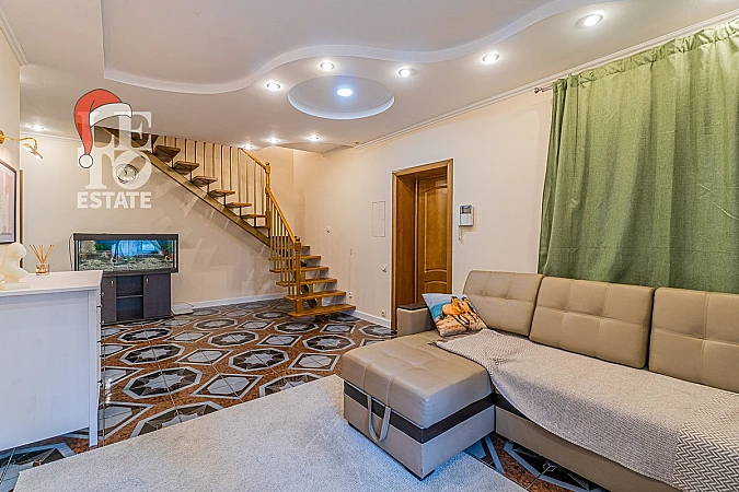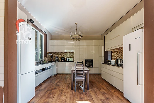 Арт. 34970665 Вашему вниманию представляется трехэтажный дом, расположенный в деревне Беляниново. Дом общей площадью 412.6 кв.м. расположен на благоустроенном участке 23.69 соток. Участок ровный, правильной формы, со всех сторон огорожен забором с автоматическими воротами. Помимо основного дома на участке расположены навес на 3 автомобиля и детская площадка. Въездная группа вымощена тротуарной плиткой и позволяет припарковать еще 3 автомобиля. Дом выполнен из высококачественных строительных материалов. Фундамент монолитный, стены кирпичные, кровля - металлочерепица. Дизайн интерьера выполнен в классическом стиле и светлых тонах. Установлена вся необходимая мебель и бытовая техника для комфортного проживания. Дом оборудован сплит-системой, системой водоподготовки и охранной сигнализацией. Ключевым местом в доме является светлая и просторная гостиная с мраморным камином и детской игровой зоной. В стоимость дома входит только встроенная мебель.