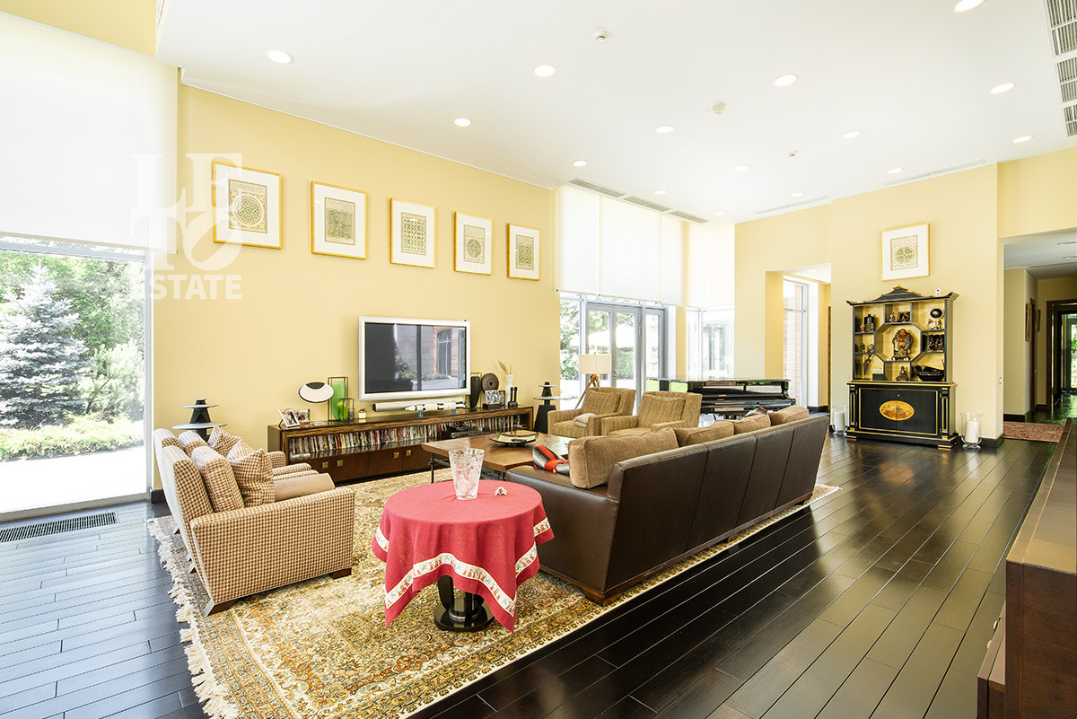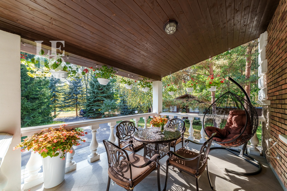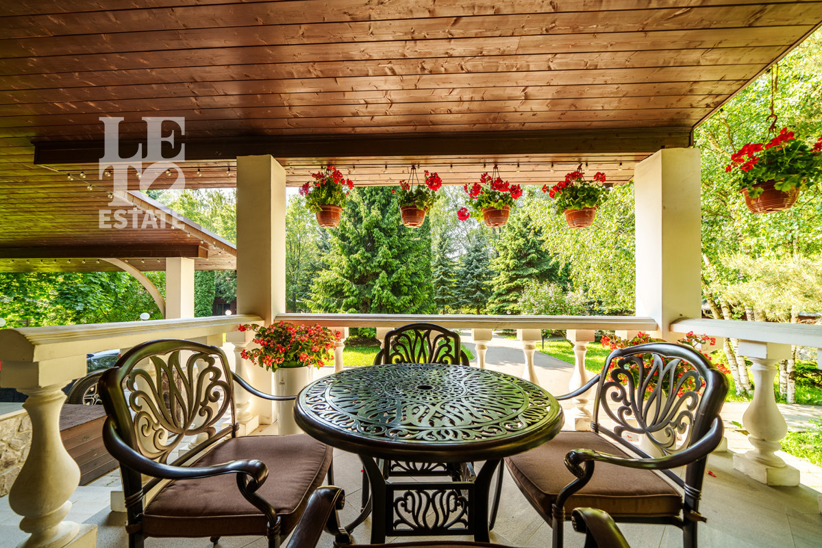 Внутри дома выполнена великолепная отделка под ключ. Все помещения дома укомплектованы дорогой бытовой техникой (Miele, Wolf) и мебелью. В доме устроена система приточно-вытяжной вентиляции, в каждой комнате установлены кондиционеры.