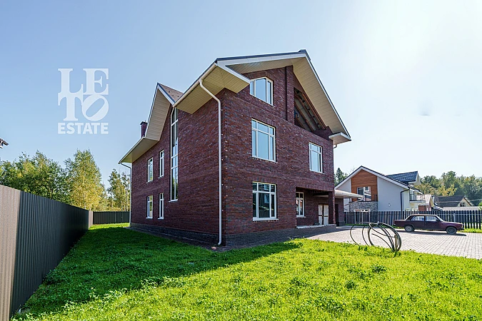 Дом построен в 2023 году из кирпича Porotherm на свайно-ленточном фундаменте, с монолитными перекрытиями и монолитными лестницами, сделана стяжка пола, фасад здания отделан облицовочным кирпичом, установлены тройные стеклопакеты Veka, крыша отделана мягкой черепицей и аква-системой, сделан водосток. Заведены все необходимые коммуникации: разведено электричество (трехфазное, 15 квт), подведен газ и установлено газовое оборудование, сделано разведение воды. Также в доме сделаны три шахты для камина.
