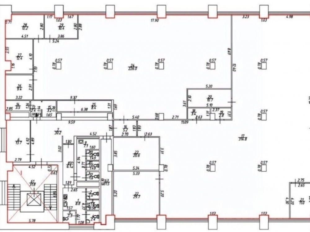 . Занимает половину этажа, общая площадь 665м2. Этаж поделен на кабинеты. Отделка за выездом арендатора: подвесные потолки, фальшпол, стены оклеены обоями, покрашены, свои с/у. Возможны каникулы на ремонт.