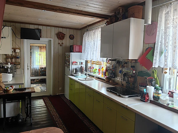 Дом площадью 137,5 кв м плюс большая утепленная терраса. Фундамент - железобетонная плита. Дом каркасный, строили для себя, поэтому выполнен из самых лучших материалов, соблюдая все технологии строительства, он получился очень теплым и уютным. На первом этаже расположена кухня, санузел, гостевая комната, спальня, несколько хоз помещений, на втором этаже три спальни. В доме газовое отопление, как резерв - подключен электрокотел, есть бойлер для воды, грамотно сделана электроразводка. Остается вся мебель и техника. В общем, дополнительных вложений в ближайшее время не потребуется.