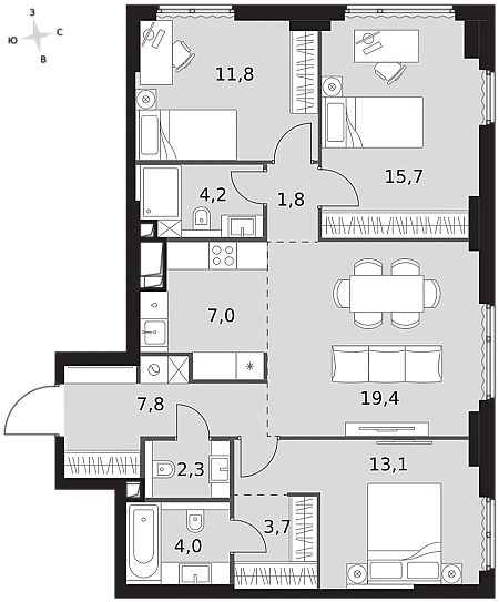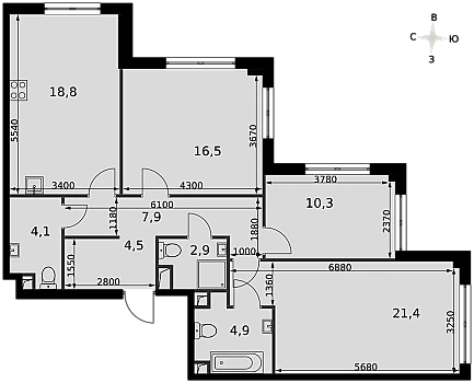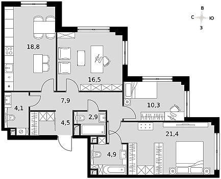 Купить 3к квартиру 89 м² в ЖК Prime Park