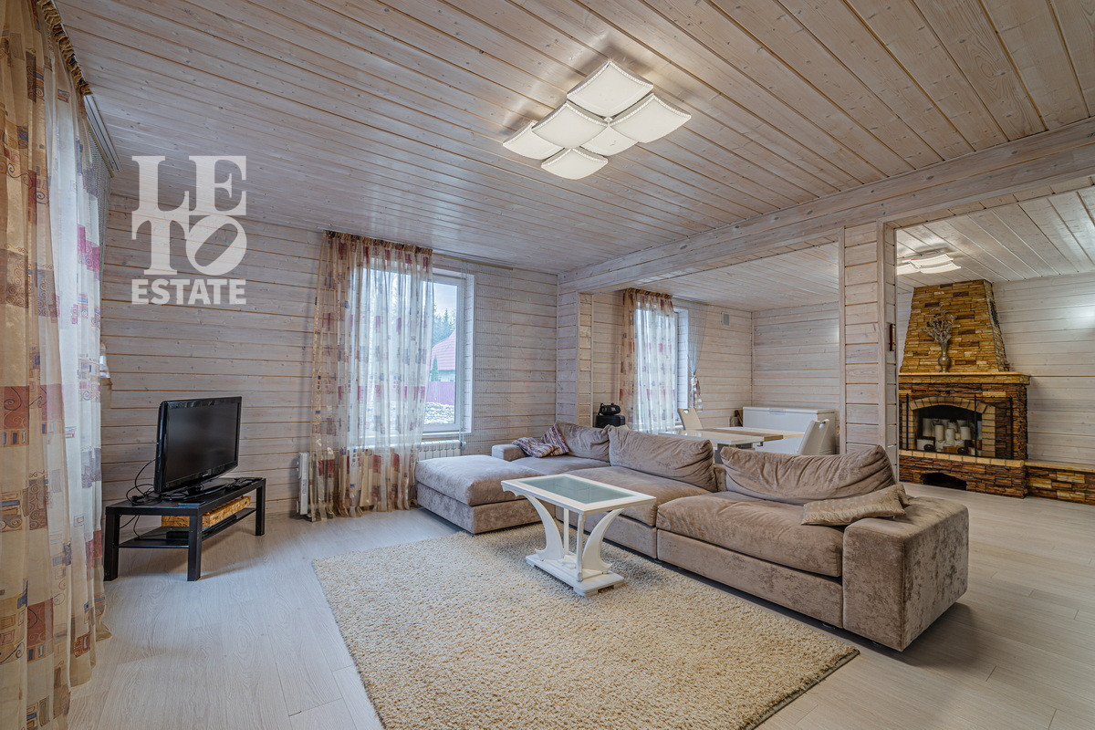 Внутри выполнена качественная отделка по индивидуальному проекту. Дом продается со всей необходимой мебелью и техникой. Встроенный кухонный гарнитур с бытовой техникой. В гостиной есть дровяной камин.