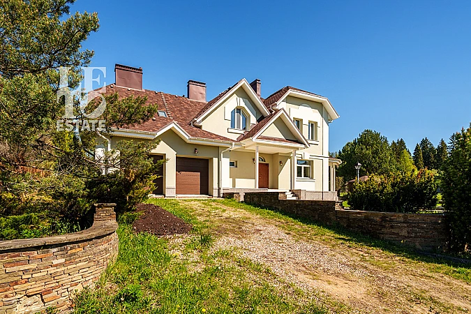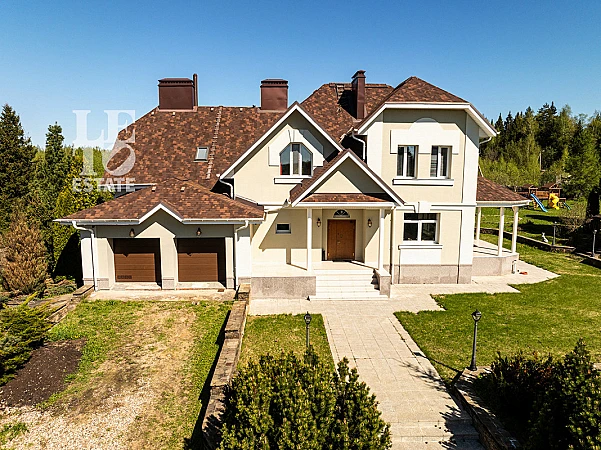 Главный дом площадью 585 кв.м., построен из прочного кирпича в классическом стиле, толщина стен составляет 80см, мягкая черепица Тегола, фундамент бетонная плита. В планировке дома тщательно продумана каждая деталь. На первом этаже Прихожая, гардеробная, гостевой санузел, гараж на 2 м/м, постирочная, гостевая спальня, гостиная с панорамным окном и вторым светом, кухня с выходом на террасу, столовая. На втором этаже расположена Спальня с гардеробной и выходом на балконом, большая ванная комната, мастер спальня с гардеробной и ванной комнатой, спальня (кабинет), спальня с санузлом. Нижний уровень дома предоставляет вам котельную, домашний кинотеатр, спа зона, зона отдыха, санузел, две кладовые.