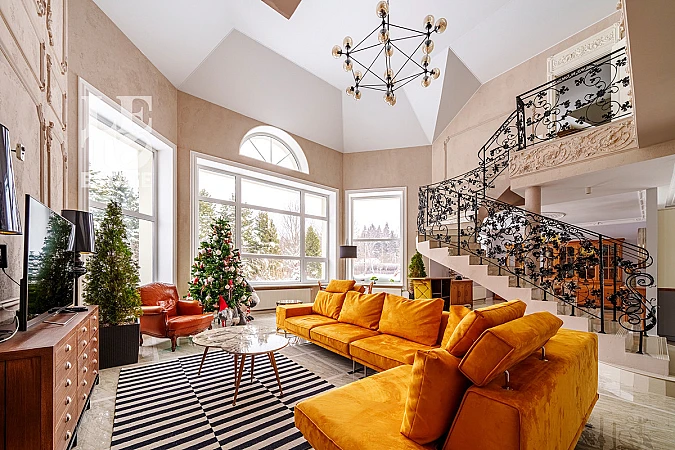 При отделке дома использовались дорогие материалы высокого качества, включая итальянский мрамор и в ручную изготовленную гипсовую лепнину. В ванной комнате и кухне установлена дорогая сантехника. Вам не придется заботиться об охране, поскольку установлены системы видеонаблюдения и пультовой охраны Sесurоn. В случае отключения электричества имеются резервные аккумуляторы, обеспечивающие надежную работу системы в течение нескольких суток. Благодаря оптоволоконной связи с пропускной способностью 500 Мбит вы всегда останетесь на связи.